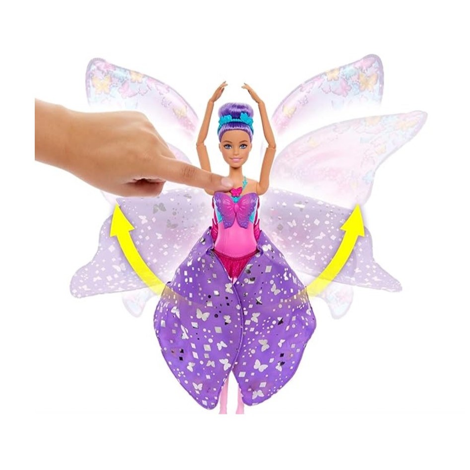 Inspire a imaginação a voar alto com a boneca Barbie Bailarina Borboleta e sua transformação mágica 2 em 1. Para começar a brincar, basta pressionar o colar no corpete da boneca para ver sua saia roxa desdobrar-se como mágica em grandes asas de borboleta cintilantes. A boneca possui encantadores cabelos roxos com um coque, tiara floral, um corpete deslumbrante e sapatilhas de ballet para completar o visual. É um presente fantástico para crianças a partir de 3 anos de idade. A boneca não fica em pé sozinha. As cores e as decorações podem variar. Especificações: Marca: Mattel Referência: HXJ10 Cód. Barras: 194735230709 Idade recomendada: 3+ anos. Funciona a bateria ou pilha? Não Dimensões do Produto na Embalagem: 33 x 23 x 7 cm Peso: 442 g Garantia do Fabricante: 3 meses Garantia do Vendedor: 7 dias Produto Novo, Original, Lacrado e Acompanhado de Nota Fiscal.