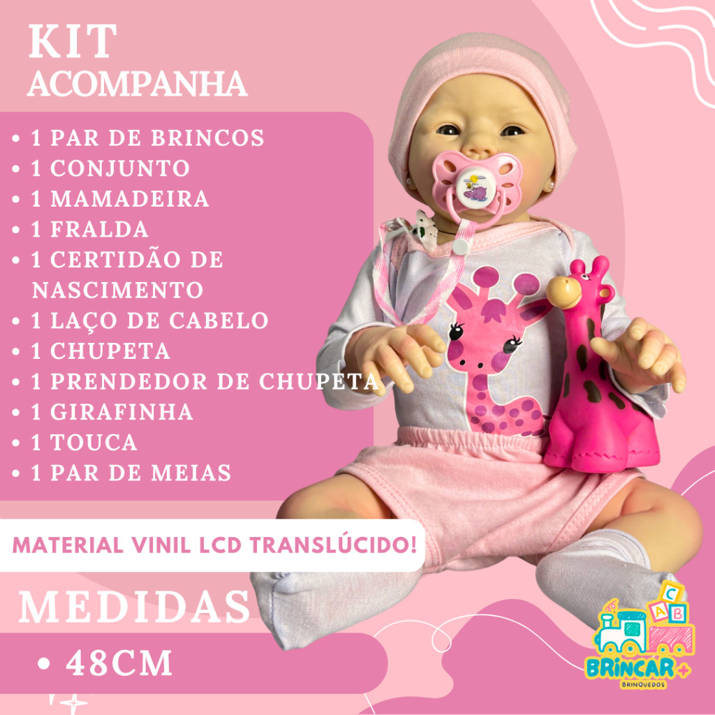 Boneca Bebe Reborn Lizie Girafinha Realista Corpo de Silicione com Enxoval Completo Abigail