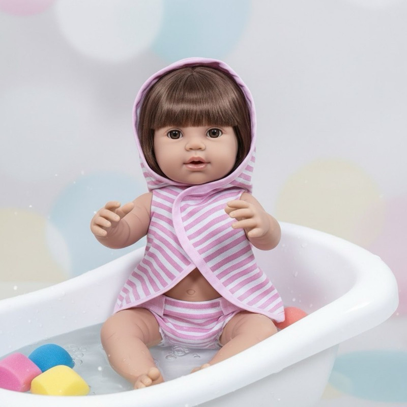 Realize o sonho da sua pequena com a Bebê Reborn mais completa da Shopee. Parece um bebê de verdade! Única com Enxoval Premium de 32 peças. Você não precisa comprar mais nada, o kit é completo! Material Atóxico, Macio e Pode dar Banho. A Bebê Reborn pode sentar, deitar, levantar os braços e pernas. REALISMO PREMIUM: Vinil siliconado atóxico com toque macio (parece pele de bebê). HORA DO BANHO: ela pode entrar na água. Diversão sem limites. TAMANHO REAL: 45cm e 1kg (Peso ideal para o colo da criança). PRONTO PARA PRESENTEAR: Já enviamos com embalagem especial e laço. Você não gasta nem um centavo a mais. COR DOS CABELOS E OLHOS: Castanhos, muito realistas O QUE VEM NO SEU ENXOVAL (32 ITENS DE LUXO) * PASSEIO: 1 Bolsa Maternidade, 1 Jardineira, 1 Camiseta, 1 Turbante, 1 Par Sapatinhos. * BANHO & SONO: 1 Roupa de Banho, 1 Calcinha, 1 Pijama 5 peças (Calça, Camiseta, Casaco, Luvas, Meias). * BELEZA: 1 Faixa de Laço, 3 Xuxinhas, 2 Presilhas, 1 Par de Brincos (já colados na boneca), 1 Pente e 1 Escova Decorados. * CUIDADOS: 3 Fraldas, 1 Mamadeira (Leite Falso), 1 Chupeta Magnética + 1 Prendedor. * DOCUMENTOS REAIS: 1 Certidão de Nascimento, 1 Carteira de Vacinação, 1 RG, 1 Ultrassom * PRESENTE: 1 Embalagem Especial + 1 Fitilho. [DÚVIDAS RÁPIDAS] * Pronta Entrega? Sim, envio imediato em 24h. * O corpo é de silicone? Sim, inteiro em vinil siliconado. Pode molhar. Diferente de outros vendedores, nossas fotos refletem o padrão de qualidade real. As estampas das roupas podem variar conforme a coleção, sempre mantendo o luxo e a riqueza de detalhes da Mamãe Reborn.