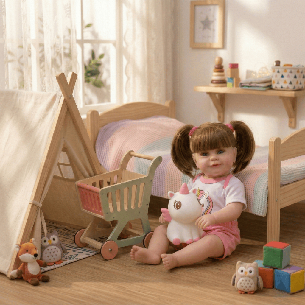 Boneca Bebê Reborn Unicórnio Menina Original Realista de Silicone Pode Dar Banho Com Bolsa Maternidade
