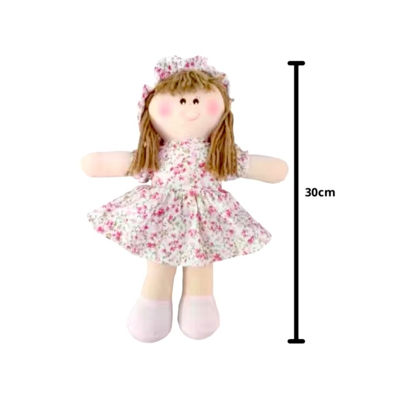 Boneca de Pano 30 cm, Bonequinha Cabelo Castanho.