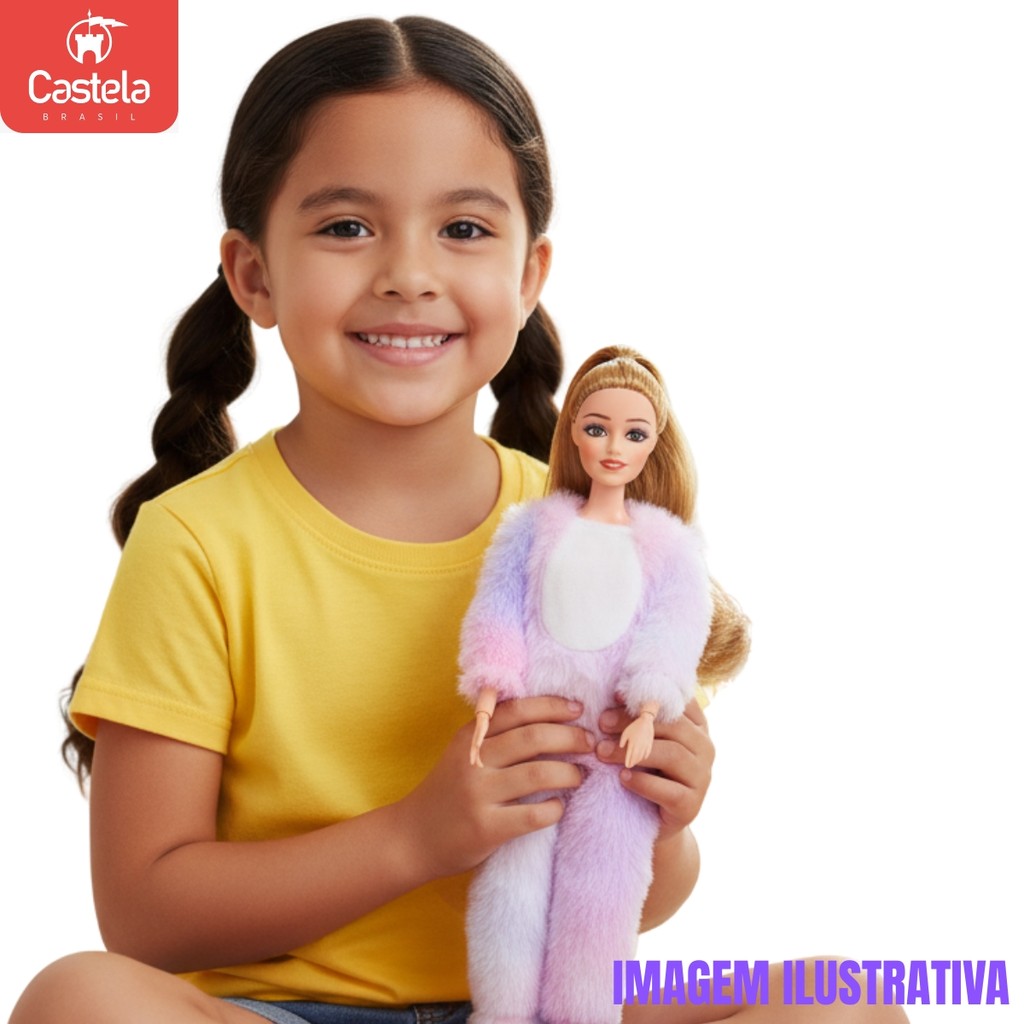DESCRIÇÃO DO PRODUTO: A diversão e a fofura estão garantidas com a Boneca Emily – Coleção Ursinho Roxo! Com design encantador, roupas delicadas e acompanhada de um lindo pente, ela é perfeita para brincar de cuidar, pentear e criar histórias cheias de imaginação. A boneca vem com um ursinho roxo super fofo, que torna a brincadeira ainda mais divertida e especial. É o presente ideal para crianças que adoram bonecas e acessórios cheios de charme. CARACTERÍSTICAS TÉCNICAS: Conteúdo da Embalagem: 1 Boneca Emily fantasia Ursinho Roxo + 1 acessório Dimensões Aproximadas do Produto: 30 cm (Altura x Largura x Comprimento/Profundidade). Dimensões Aproximadas da Embalagem: 34 cm x 24 cm x 8 cm (Altura x Largura x Comprimento/Profundidade). Material/Composição: Plástico, vinil e tecido. Idade Mínima Recomendada: A partir de 3 anos Participantes: A partir de 1 pessoa Alimentação: Não se aplica Marca: Castela Referência: CBS0920 Outras informações: As cores podem variar entre as imagens mostradas acima e o produto. Imagens meramente ilustrativas. Aviso: As informações e imagens divulgadas são de total responsabilidade do fabricante/fornecedor. Produto lacrado e disponível a pronta entrega para todo Brasil! APROVADO PELO INMETRO
