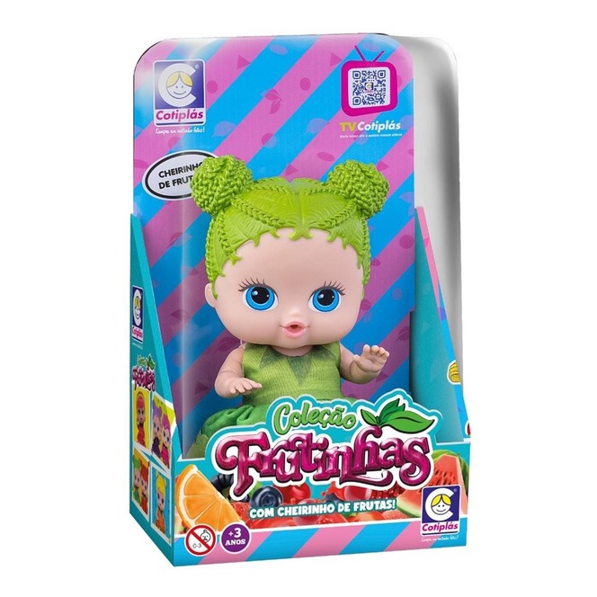 Boneca linda e com cheirinho de fruta. As Frutinhas da Cotiplás voltaram ainda mais lindas! Com expressões marcantes e cabelos com cores vivas, as crianças vão se apaixonar por esses bebês! É super fofa, delicada, gostosa de abraçar e apertar, e compõe um delicioso cheirinho da frutinha que representa, neste caso, um delicioso cheirinho de morango! Com o alto padrão de qualidade característico das bonecas Cotiplás. Estimula a interação entre pais e filhos, coordenação motora, criatividade e imaginação da criança! Aproveite! Bonequinhas fofinhas com cheirinho de frutas. Especificações. Conteúdo da Embalagem: 1 boneca de aproximadamente 18 cm.