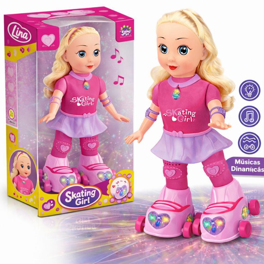 Boneca Patinadora Patins Canta Dança e Patina Com Luzes e Sons
