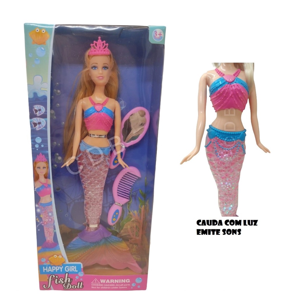 Boneca Princesa Sereia Musical Cauda Brilhante - Fish Prince