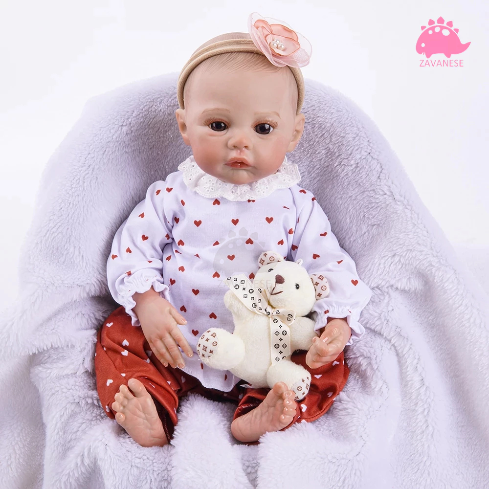 Boneca Reborn Corações Felizes 50cm Roupinha Estampada Ursinho de Pelúcia Fofo ZAVANESE