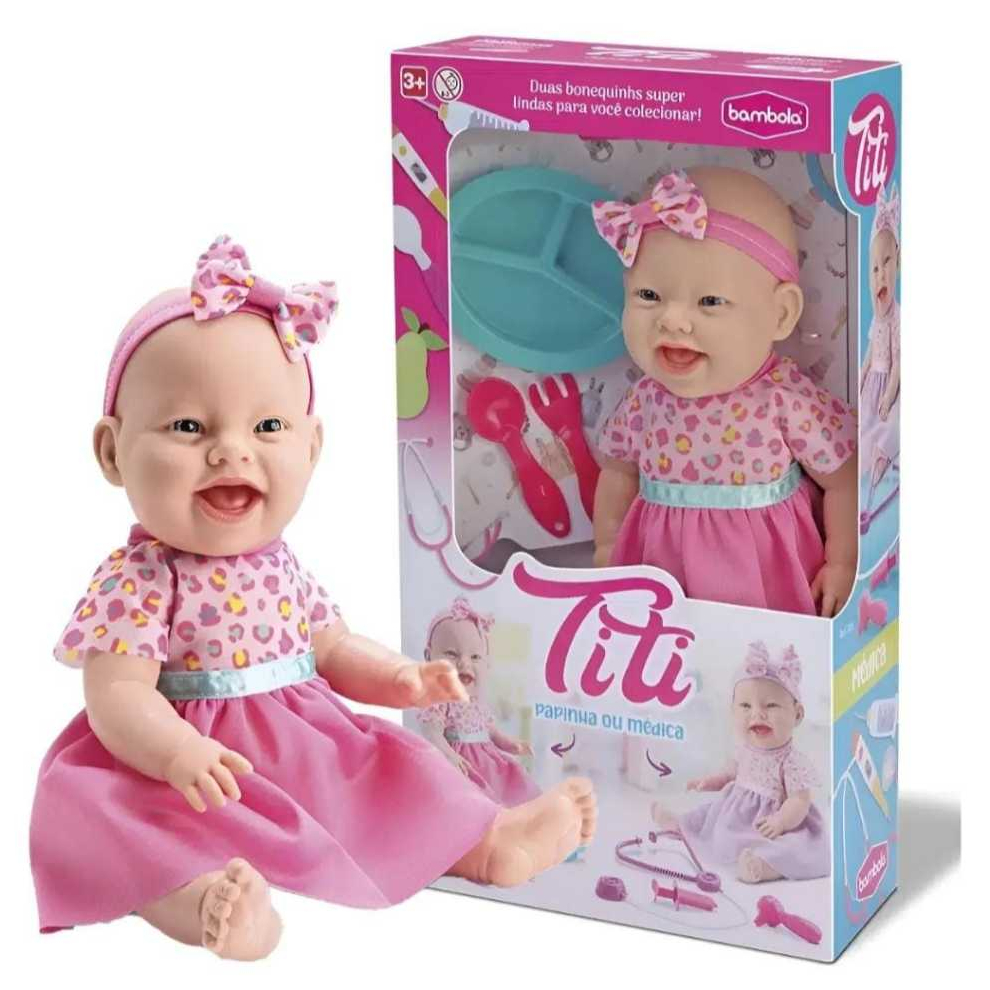 Boneca Titi Papinha Com Acessórios Pratinho Colher Garfinho - Menina Bambola
