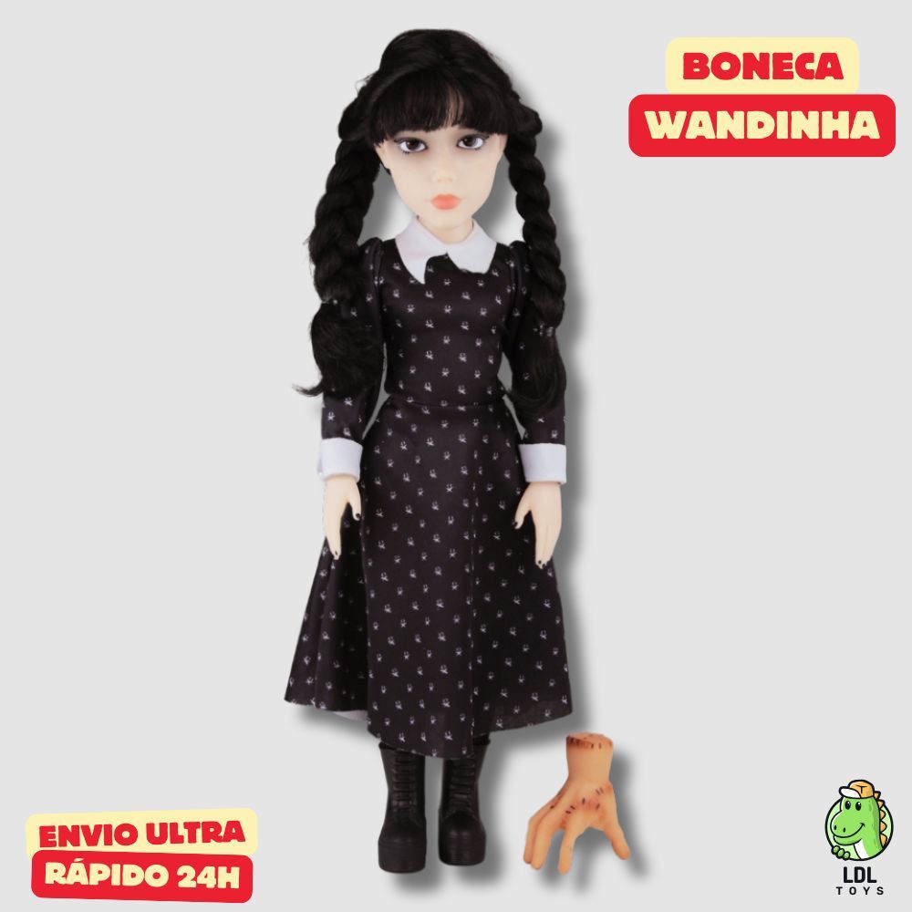 Boneca Wandinha Addams + Mãozinha 44cm BabyBrink Original Articulada Vandinha