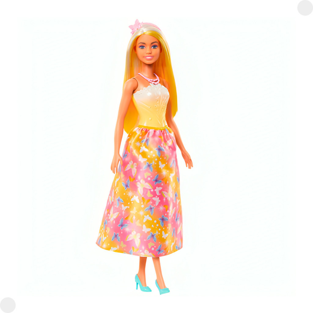 DESCRIÇÃO DO PRODUTO: Estas bonecas reais da Barbie vêm em um arco-íris de cores! Cada boneca tem mechas coloridas no cabelo, um corpete esculpido, saia estampada e acessórios estilosos. Doces e encantadoras, as bonecas Barbie Realeza são feitas para inspirar contos mágicos de aventura: as crianças a partir de 3 anos podem colecioná-las para uma diversão fantástica! Cada produto é vendido separadamente, sujeito a disponibilidade. As bonecas Barbie não ficam em pé sozinhas. As cores e as decorações podem variar. BARBIE Fantasia. Uma terra de conto de fadas cheia de magia e aventura se apresenta com esta encantadora coleção de bonecas reais da Barbie! VISUAL MÁGICO. A Barbie tem um cabelo com mechas coloridas e usa um corpete ombré com detalhes deslumbrantes e uma saia de borboleta combinando.?? OS DETALHES FINAIS. Cada boneca Barbie também vêm com acessórios coloridos, como tiaras, colares e sandálias para diversão com estilo! O PRESENTE IDEAL. De realeza e sereias a unicórnios e muito mais: as bonecas de contos de fadas da Barbie são um presente encantador para as crianças! MAGIA MATTEL. A Mattel realiza sonhos e encanta gerações há décadas, zelando pelo entretenimento e diversão de crianças por todo o mundo. CARACTERÍSTICAS TÉCNICAS: Conteúdo da Embalagem: 01 Boneca. Dimensões Aproximadas do Produto: 30cm x 07cm (Altura x Largura) Dimensões Aproximadas da Embalagem: 34cm x 12cm x 11cm (Altura x Largura x Comprimento/Profundidade) Material/Composição: Plástico. Idade Mínima Recomendada: A partir de 03 anos. Participantes: A partir de 1 pessoa Alimentação: Não se aplica Marca: Mattel. Referência: HRR07 Outras informações: As cores podem variar entre as imagens mostradas acima e o produto. Imagens meramente ilustrativas. Aviso: As informações e imagens divulgadas são de total responsabilidade do fabricante/fornecedor. Produto lacrado e disponível a pronta entrega para todo Brasil! APROVADO PELO INMETRO