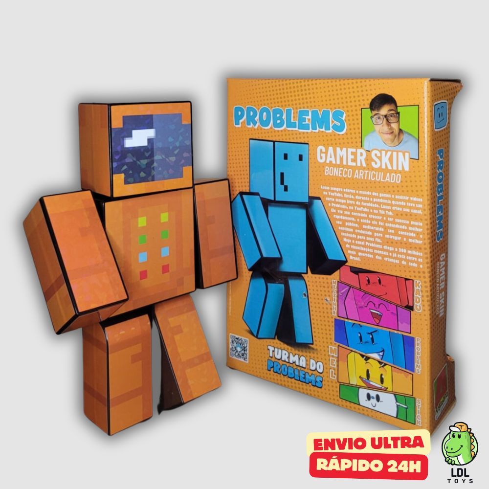 Boneco 25cm Gamer Skin Articulado Zoom Turma Do Problems 3 Chaveiros Youtuber Algazarra
