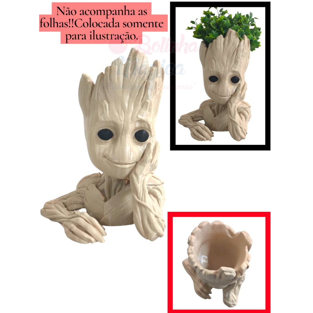 ATENÇÃO: NÃO PERSONALIZAMOS NENHUM PRODUTO, TODOS SÃO ENVIADOS CONFORME A DISPONIBILIDADE EM ESTOQUE, SEM POSSBILIDADE DE ESCOLHA DE COR, TAMANHO OU MODELO. ITEM ANUNCIADO: 1 BONECO BABY GROOT Apresentamos o adorável vasinho Baby Groot! Feito com material de alta qualidade, garantindo que ele não apenas pareça incrível, mas também dure mais do que uma viagem intergaláctica! Perfeito para suas plantinhas ou até para guardar aquele lápis que sempre some, o Baby Groot traz um toque de charme e um pouco de humor para qualquer ambiente. Afinal, quem pode resistir a um pequeno guardião que também é um vaso? Adote essa plantinha e deixe seu espaço tão divertido quanto o universo dos Guardiões da Galáxia! 🪴 Utilidades principais: Ideal como cachepô para suculentas, cactos ou pequenas plantas (🌿 a planta da foto é ilustrativa – não acompanha o produto); Pode ser usado como porta-canetas, organizador de mesa ou item decorativo; Ótimo para presentear fãs de Guardiões da Galáxia ou amantes de decoração criativa! 📏 Tamanho ideal para pequenas plantinhas e ambientes como escritórios, quartos e salas. Esse simpático Groot foi impresso em 3D com muito cuidado e carinho por nós mesmos! Com seu visual divertido e cheio de personalidade, ele é perfeito para trazer um toque criativo à sua decoração. 🖨️ Produzido em impressão 3D QUALQUER DÚVIDA ESTAMOS A DISPOSIÇÃO PARA ESCLARECER! ATENCIOSAMENTE; BOLINHA MÁGICA PEQUENO PRESENTE, GRANDE ALEGRIA!