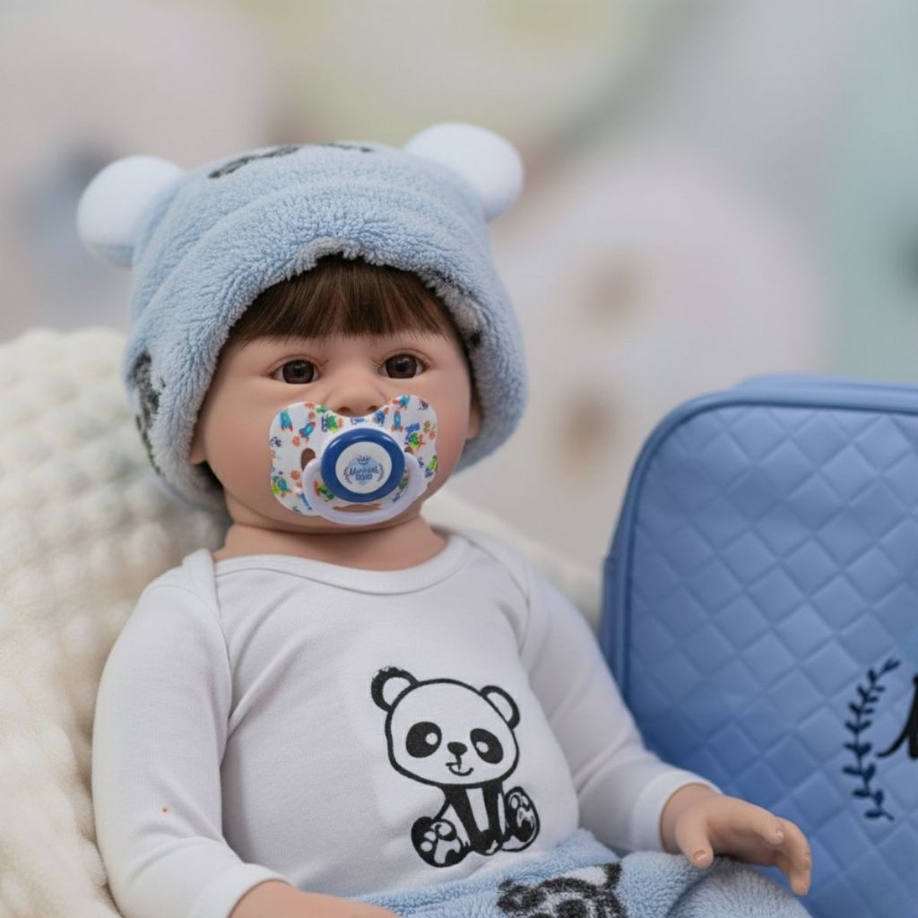 Boneca Reborn Menino + Kit Enxoval Completo com Bolsa e Roupinha que Brilha no Escuro A Mamãe Reborn apresenta um kit exclusivo para deixar a experiência de brincar de ser mamãe ainda mais emocionante. Este conjunto acompanha uma linda boneca reborn menino com roupinha temática de ursinho, feita em tecido especial que brilha no escuro, trazendo ainda mais encanto e magia para a brincadeira. O enxoval é supercompleto e inclui bolsa personalizada Mamãe Reborn, body de manga longa, calça felpuda combinando, touquinha com orelhinhas, sapatinhos delicados, mamadeira, chupetas com prendedor, kit de escova e pente, três fraldinhas descartáveis e uma naninha com pelúcia para aconchegar o bebê. Ele mede 48cm. E pesa em torno de 1kg. Veste RN. Um presente perfeito para encantar crianças e colecionadores apaixonados por bonecas reborn, unindo realismo, carinho e o toque mágico da roupa que brilha no escuro. Atenção: Pode variar estampa da roupinha.