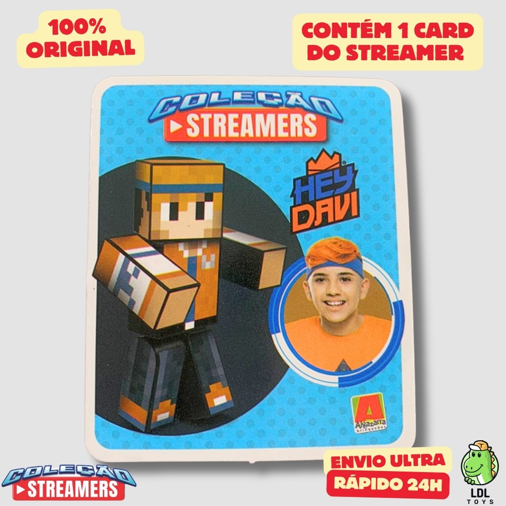 Cápsula Colecionável Cada cápsula contém: ✨ 1 Boneco colecionável de aproximadamente 8 cm de altura ✨ 1 Cartela de adesivos para personalizar e colar ✨ 1 Card exclusivo do streamer ✨ 3 Ferramentas divertidas para complementar a brincadeira Ideal para colecionadores, fãs e para presentear! Produto embalado com carinho, pronto para garantir diversão e criatividade. 📌 Tamanho da cápsula: compacto, fácil de guardar ou levar para onde quiser. 📌 Indicado para todas as idades a partir de 3 anos. Garanta já o seu e aumente sua coleção!