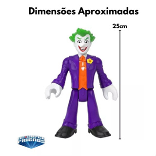 Os pequenos fãs de Batman™ podem levar suas batalhas de Super-Heróis contra Supervilões a proporções épicas com esta Fisher-Price® Imaginext® DC Super Friends™ A figura de ação Coringa articulada e extragrande da Imaginext da coleção DC Super Friends possui o icônico traje roxo e verde do personagem. Com o boneco Coringa extragrande de 25 cm de altura e pescoço, ombros, pernas e punhos totalmente articulados, as crianças podem criar suas próprias aventuras vilanescas em Gotham City™ e além! CARACTERÍSTICAS TÉCNICAS: Conteúdo da Embalagem: 1 Boneco Coringa Imaginext Dc Super Friends Dimensões Aproximadas do Produto: 25 cm x 18,5 cm (Altura x Largura) Dimensões Aproximadas da Embalagem: 10 cm x 20 cm x 29 cm (Altura x Largura x Comprimento/Profundidade) Material/Composição: Plástico Idade Mínima Recomendada: A partir de 3 anos Participantes: A partir de 1 pessoa Alimentação: Não se aplica Marca: Mattel Referência: HHH82 Outras informações: As cores podem variar entre as imagens mostradas acima e o produto. Imagens meramente ilustrativas. Aviso: As informações e imagens divulgadas são de total responsabilidade do fabricante/fornecedor.