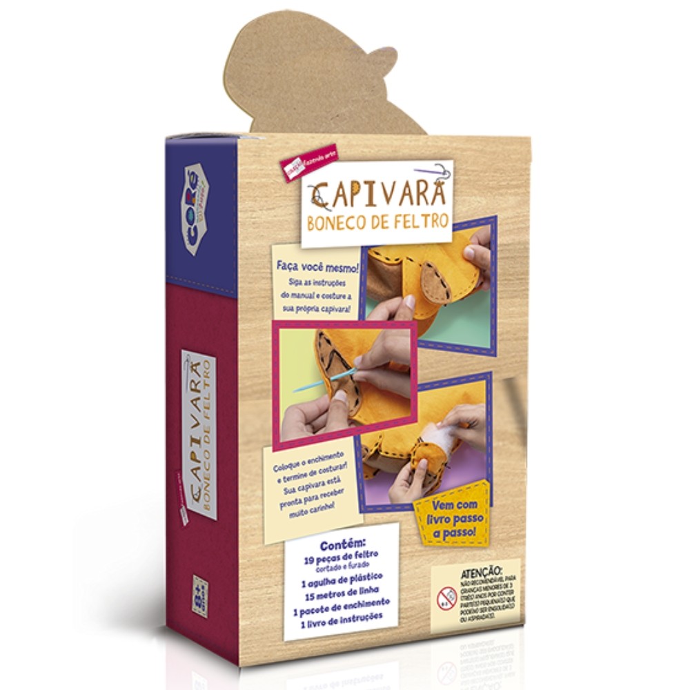 BONECO DE FELTRO CAPIVARA TOYSTER COLEÇÃO FAZENDO ARTE COSTURA LINHA AGULHA LIVRO HISTÓRIA CAPIBARA