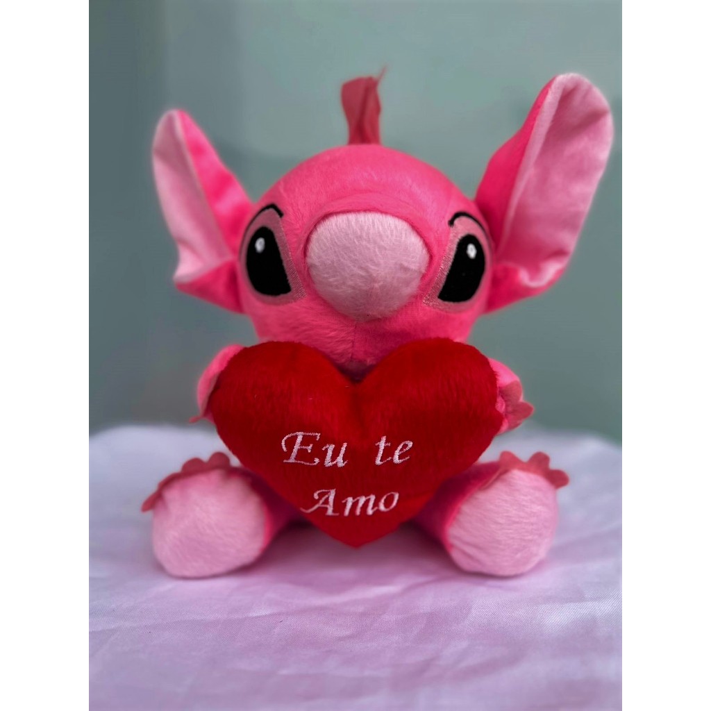 Boneco De Pelúcia Bicho Stitch 23cm Com Coração Eu Te Amo - Presente dia dos Namorados