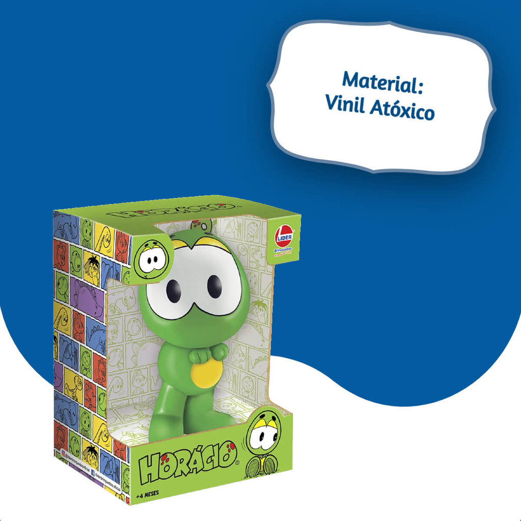 A Turma da Mônica saiu dos quadrinhos e agora está pertinho de você! Com o Horácio igual ao dos gibis e em uma embalagem exclusiva, as crianças terão uma nova companhia para as suas aventuras e histórias. Características: - Marca: Lider - Modelo: 3013 *Imagens Meramente Ilustrativas Especificações Técnicas: - Personagem: Turma da Mônica - Produto Certificado: CE-BRI/IQB 00275552668 - Idade Recomendada: +4 meses - Material: Vinil - Peso: 266g Conteúdo da Embalagem: - 1x Boneco Horácio Turma da Mônica