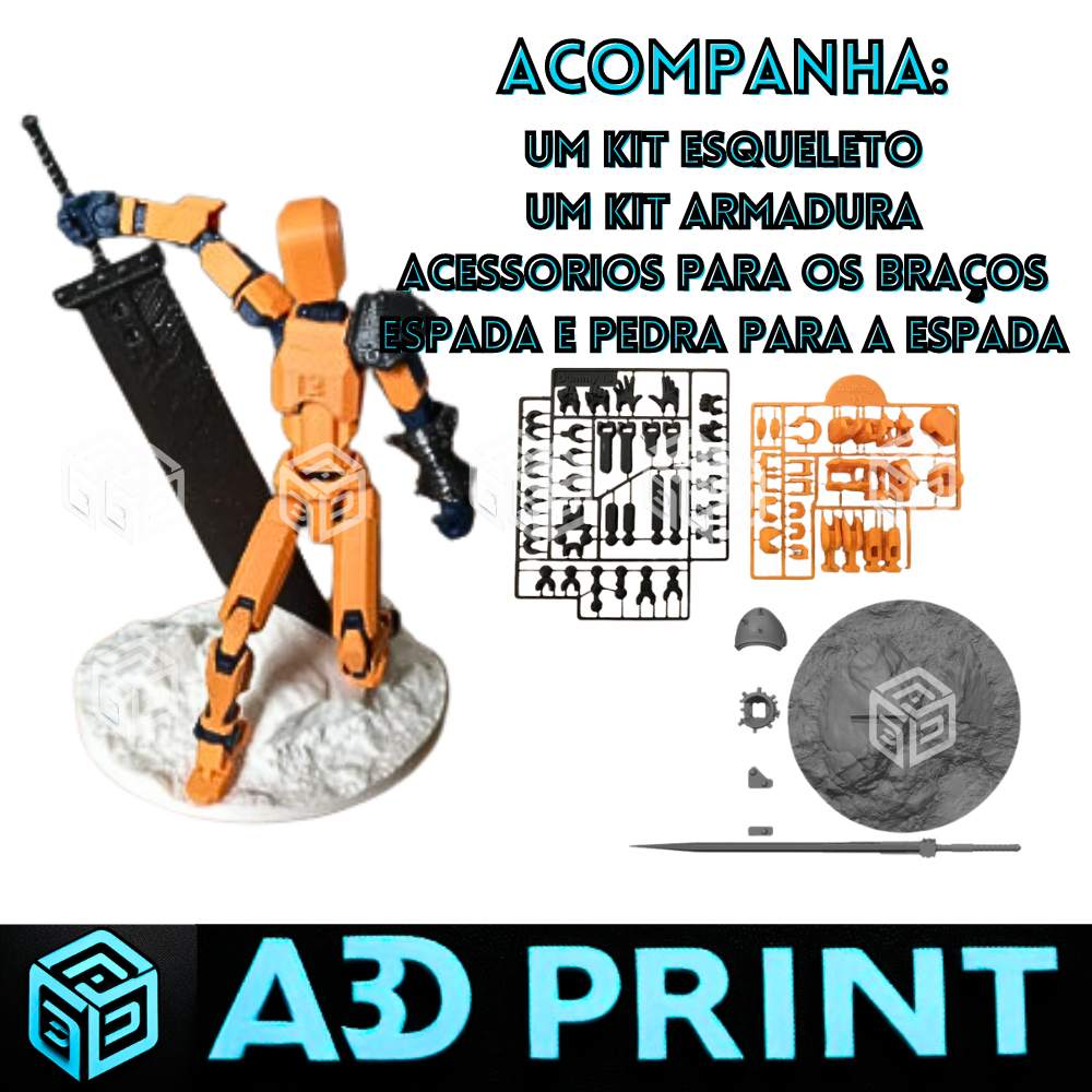 Boneco Dummy 13 Gladiador Cloud Strife Remix- Articulado Action Figure Brinquedo Varias Posições 3D