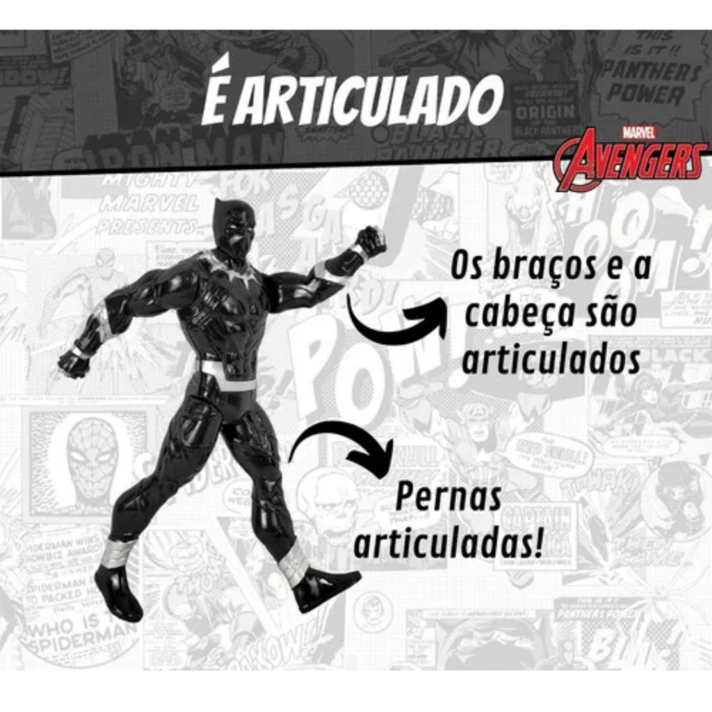 | Boneco Pantera Negra Brinquedo Articulado Super Heróis Marvel Brinq... este produto | R$ 38,98 | 61% | 4.7/5 | 30 |
