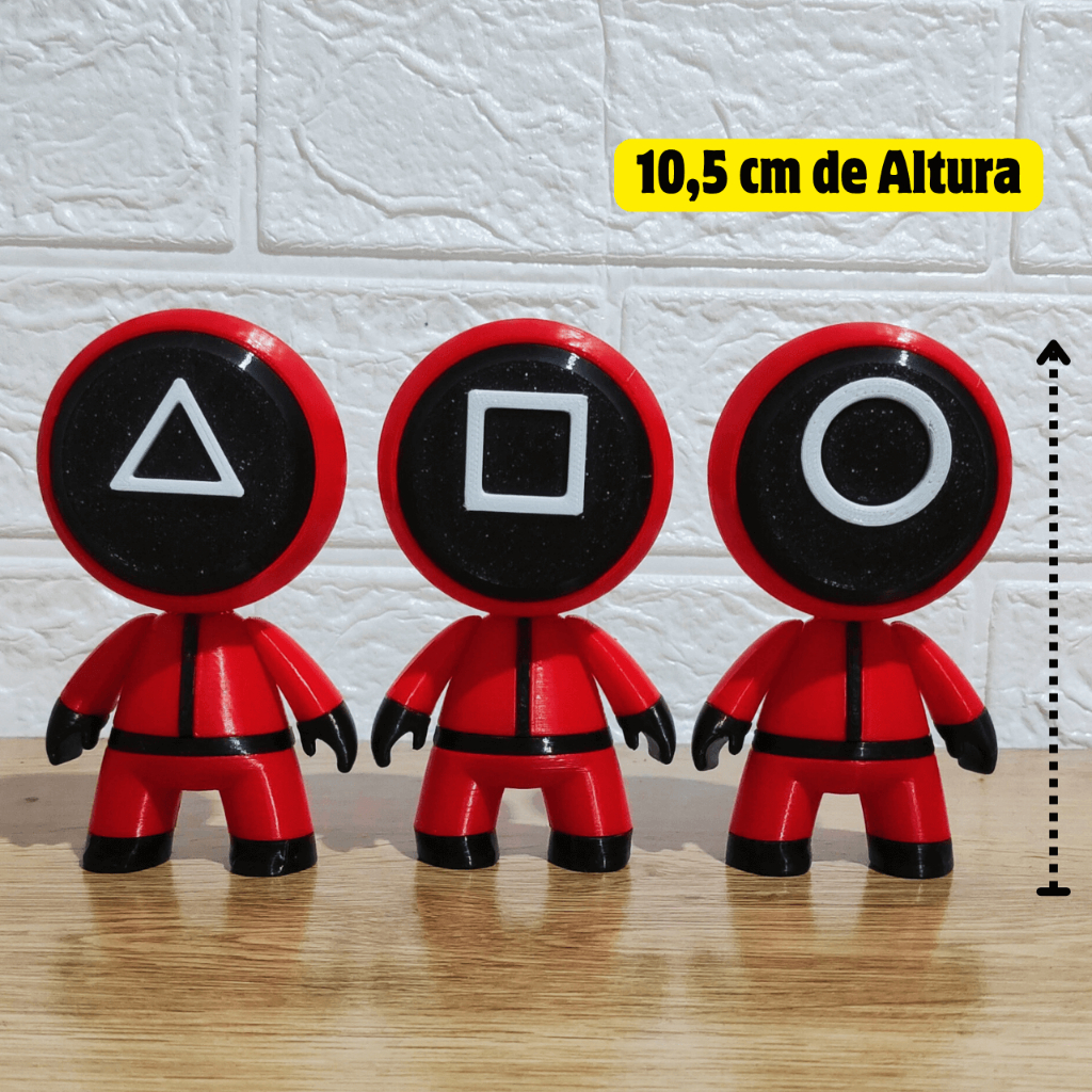 📍 Somos fabricantes! Compre direto da fonte com qualidade garantida. 🎮 GEEK DE VERDADE TEM ESSES GUARDAS DO ROUND 6 NA COLEÇÃO! 🎮 👮♂️ Bonecos Round 6 – Guardas da Série 🔺🔳⭕ Reviva o suspense de Round 6 com esse trio incrível dos guardas mascarados! Perfeitos para fãs da série, colecionadores e amantes da decoração geek. 🧩 Detalhes do Produto: ✔️ Altura: 10,5 cm cada ✔️ Material: Plástico PETG de alta qualidade ✔️ Produção: Impressão 3D precisa e durável ✔️ Acabamento: Ótimo nível de detalhes 🔺🔳⭕ Hierarquia dos Guardas: ⭕ Círculo: Soldado – executa tarefas 🔺 Triângulo: Guarda – impõe as regras 🔳 Quadrado: Líder – comanda as operações 🎁 Ideal para: 🪑 Decorar estantes, mesas e setups gamers 🎉 Presentear fãs e colecionadores 📦 Envio rápido e embalado com todo cuidado 💡 DICA: Combine com outros personagens ou itens geek para montar um setup ainda mais completo! 🧡 Produto exclusivo e feito com carinho