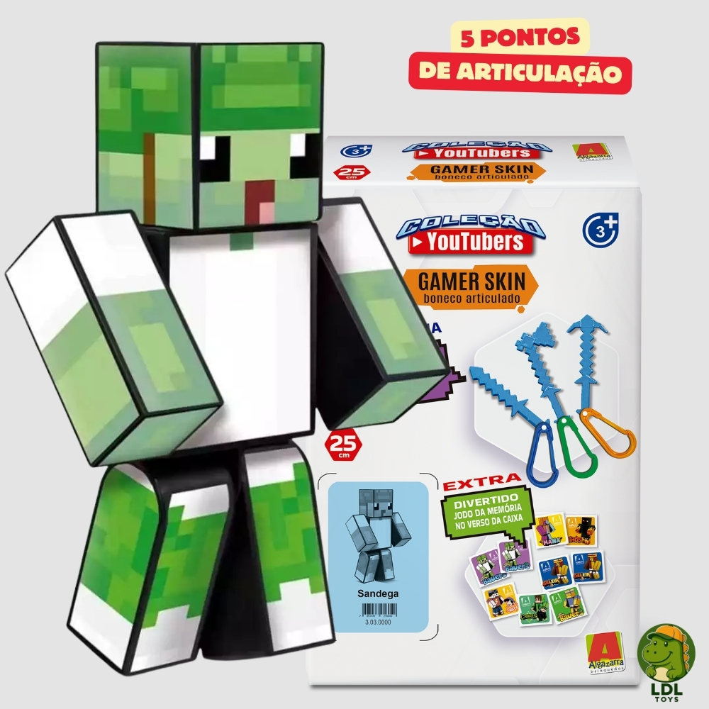 Boneco Sandega 25cm Articulado Acompanha 3 Chaveiros Youtuber Original Algazarra