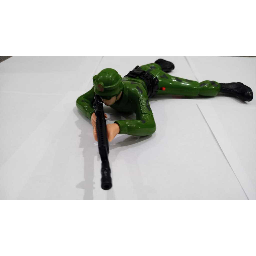 Boneco Soldado A Pilhas Que Rasteja Soldadinho Rastejante Brinquedo Musical som utiliza duas pilhas ótimo brinquedo para as crianças