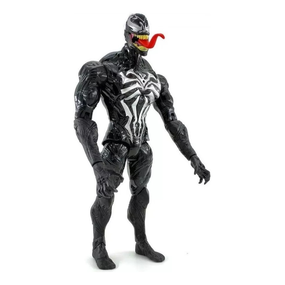 Boneco Venom - Grande Articulado 30 cm com Luz e Som Colecionável --- BONECO ARTICULADO. A figura do Venom no estilo de desenho animado é uma representação fiel e impressionante deste famoso vilão do universo Marvel. Com sua aparência intimidadora e detalhes meticulosos, a figura traz à vida o icônico personagem com perfeição. Uma característica única desta figura é sua voz iluminada, que acrescenta um elemento intrigante e marcante ao visual do Venom. Com um LED embutido na boca, a figura emite uma luz intensa toda vez que é ativada, aumentando ainda mais a atmosfera sinistra e ameaçadora do personagem. Além disso, a figura também faz parte da linha dos Vingadores, o que a torna ainda mais especial para os fãs. Com possibilidade de articulações, o Venom Cartoon é perfeito para criar poses dinâmicas e recriar cenas de batalha épicas entre heróis e vilões. Seja para colecionadores apaixonados por personagens da Marvel ou fãs de super-heróis que desejam adicionar um toque de vilania em sua prateleira, a figura do Venom Cartoon com voz iluminada e sua conexão com os Vingadores é uma escolha excepcional. ESPECIFICAÇÕES: Material: PVC de alta qualidade e não tóxico.