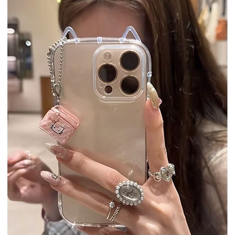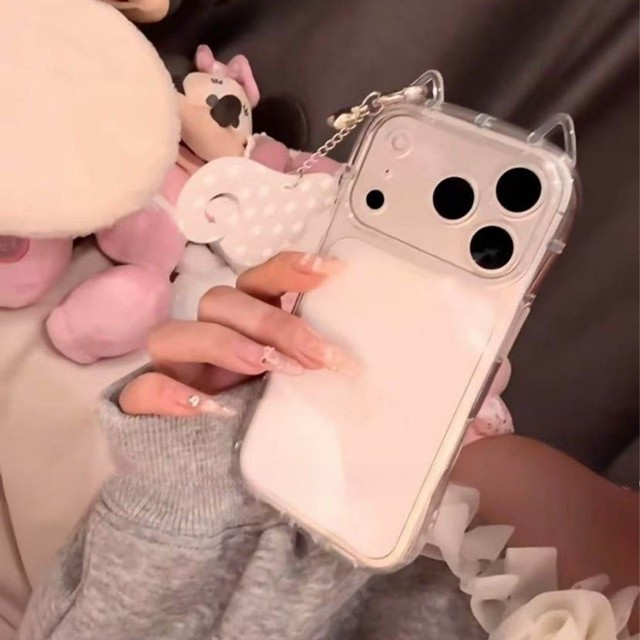 Bonito 3D Orelha De Gato Transparente Caso De Telefone Para IPhone17 Pro Max 17 Ar 13 12 14 15 16Promax 15 14 Plus À Pro