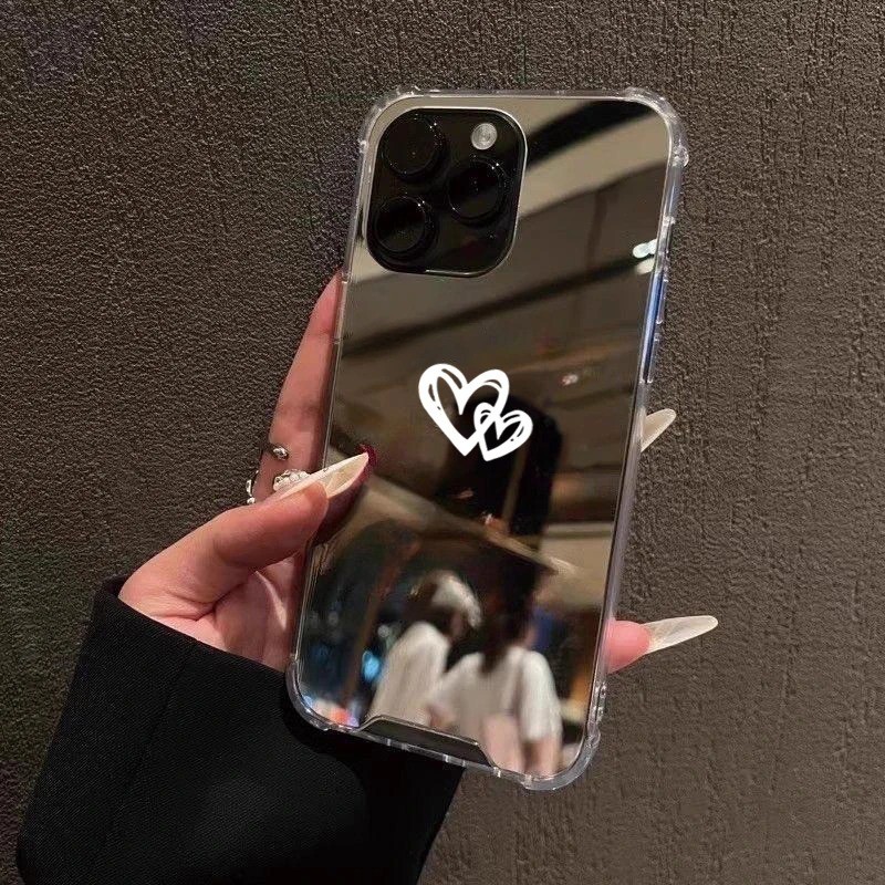 Bonito Amor Coração Espelho Caso De Telefone Para iPhone 11 12 13 14 15 16 Pro Max XS X XR 7 8 Plus SE2 Compõem Capa Mac