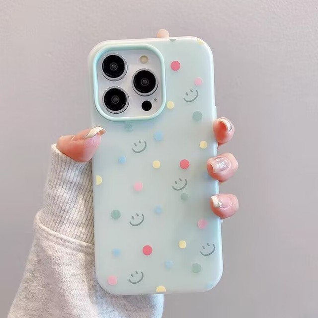 Bonito Bolinhas Sorriso Caso De Telefone Para iPhone 16 15 14 13 12 11 Pro Max 16 Plus Geléia 2-Em-1 Silicone Capa Trase