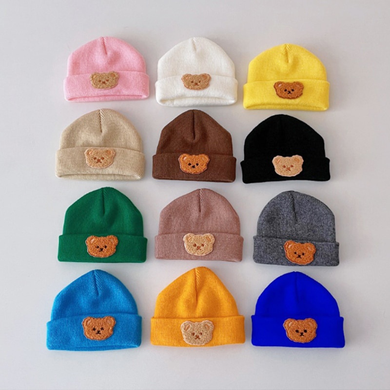 Bonito Urso De Desenho Animado Bebê Gorro Macio Outono Inverno Infantil Chapéu De Cor Sólida Boné Malha