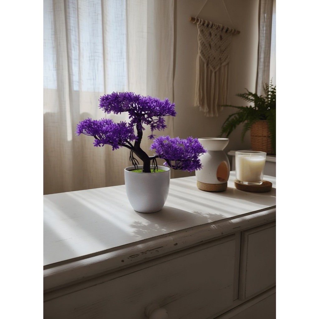 Bonsai Nuvem Artificial Premium Folhas Lilás Vibrantes Vaso Redondo Elegante Decoração Duradoura