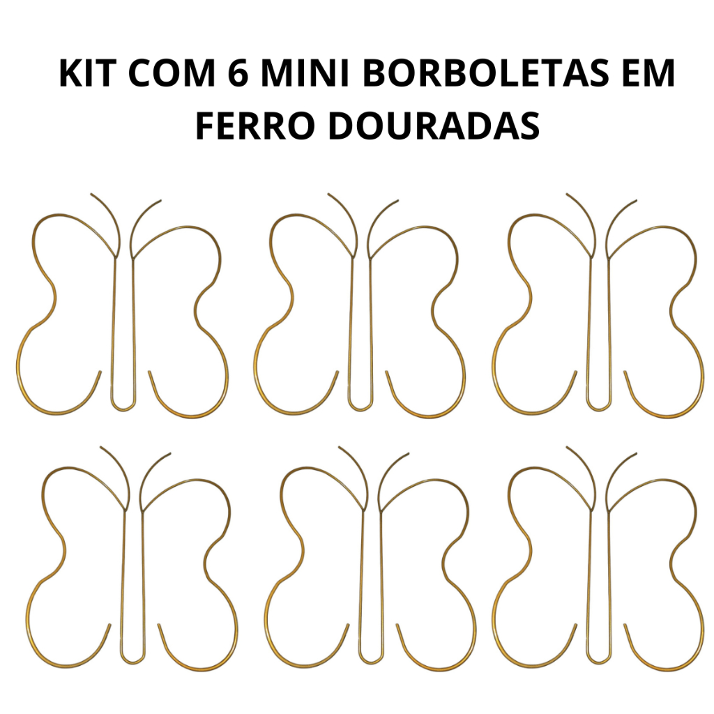 | Borboleta Em Ferro Kit Com 6 Peças Para Decoração E Festa Dourada este produto | R$ 46,00 | 8% | 4.9/5 | 3 |
