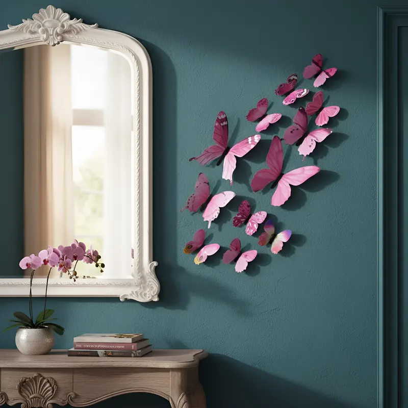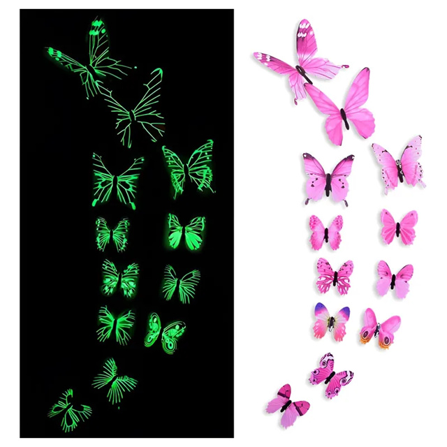 Borboletas Decorativas 3D que Brilham no Escuro Adesivo de Parede Decoração Casa Rosa Pink decorar