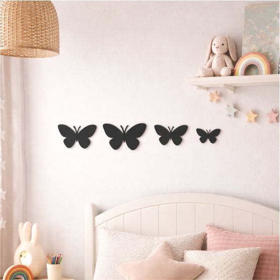 Borboleta Decorativa em MDF Preto – Kit com 4 Unidades Kit de borboletas decorativas em MDF preto. O conjunto conta com 4 borboletas em tamanhos diferentes, permitindo criar composições harmônicas, como disposição em sequência do menor para o maior. Medidas: Borboleta maior: 15,5 cm Borboleta médio1: 13 cm Borboleta médio2: 10,5 cm Borboleta pequena: 8 cm Características: Material: MDF resistente Cor: Preto Fixação prática: acompanha fita dupla face, não necessita furar a parede Leves, versáteis e fáceis de aplicar Uma opção perfeita para quem busca decoração elegante, moderna e de fácil instalação, trazendo leveza e personalidade ao ambiente. 🦋