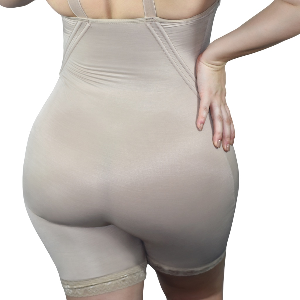 Modelador Pós-Parto e Amamentação Com 2 Barbatanas de silicone e 3 Colchetes para regulagem no fechamento da Cinta. Confeccionado em cetinete estruturado, altamente compressivo, leve e macio. Busto anatômico, sem aro, com frente que se destaca por inteiro, com fechamento em fecho click plástico, facilitando a amamentação. Reforço estratégico em tecido duplo localizado na parte frontal da peça. Modela a cintura, comprime o abdômen e corrige a postura. Pernas cavadas com acabamento em elástico suave. Abertura nos entrepernas com fechamento em colchetes de dupla regulagem. Costas retas, na altura do busto. Traseiro levemente cavado. Alças reguláveis. BENEFÍCIOS E INDICAÇÕES: Ajuda na redução de hematomas e edemas; Auxilia na correção postural; Com o seu simples uso diário, massageia o corpo confortavelmente, ativando a circulação sanguínea, melhorando a disposição; Facilidade para vestir devido a abertura com colchetes; Indicado para o uso pós-parto e diário; Na medida certa e compressão ideal, modela o corpo, seios, costas, abdômen, flancos, quadril, glúteos, culotes e coxas, sem apertar ou marcar; Pode ser utilizada para diástase abdominal; Prevenção à flacidez, celulites, estrias e gorduras localizadas; Produto antialérgico; Super confortável; Utilizada no processo de redução de medidas. CARACTERÍSTICAS: Alças fixas e reguláveis, com abertura para amamentar; Busto de amamentar pré-moldado (tecido com textura mais fina na parte da mama, oferecendo um encaixe mais confortável e perfeito); Busto de amamentar com costura (tecido com uma costura ao meio da mama, oferecendo maior sustentação para mamas maiores); Composição: 82% Poliamida, 18% Elastano; Fundo com abertura higiênica entre pernas; Modelador com abertura frontal com colchetes em duas regulagens; Pernas acima dos joelhos, com acabamento em overloque; Reforço em tecido na região do abdômen, para oferecer maior compressão; CUIDADOS: Lavar diariamente após o uso, com sabonete glicerinado neutro; Não lavar em máquinas e centrífugas. Lavar à mão e secar à sombra; Depois de seco, deixar por 30 minutos na geladeira; Não usar cremes, óleos ou outros produtos em contato direto com o tecido; Usar no tamanho confortável às suas medidas e não apertado. TAMANHOS E MEDIDASP Veste 38/40 Medidas: Busto 82-87 cm / Tórax 58-63 cm / Cintura 57-62 cm / Quadril 83-88 cm / Comprimento 64 cmM Veste 42 Medidas: Busto 88-93 cm / Tórax 64-69 cm / Cintura 63-68 cm / Quadril 89-94 cm / Comprimento 66 cmG Veste 44 Medidas: Busto 94-99 cm / Tórax 70-75 cm / Cintura 69-74 cm / Quadril 95-100 cm / Comprimento 68 cmGG Veste 46 Medidas: Busto 100-104 cm / Tórax 75-80 cm / Cintura 75-80 cm / Quadril 101-106 cm / Comprimento 70 cm