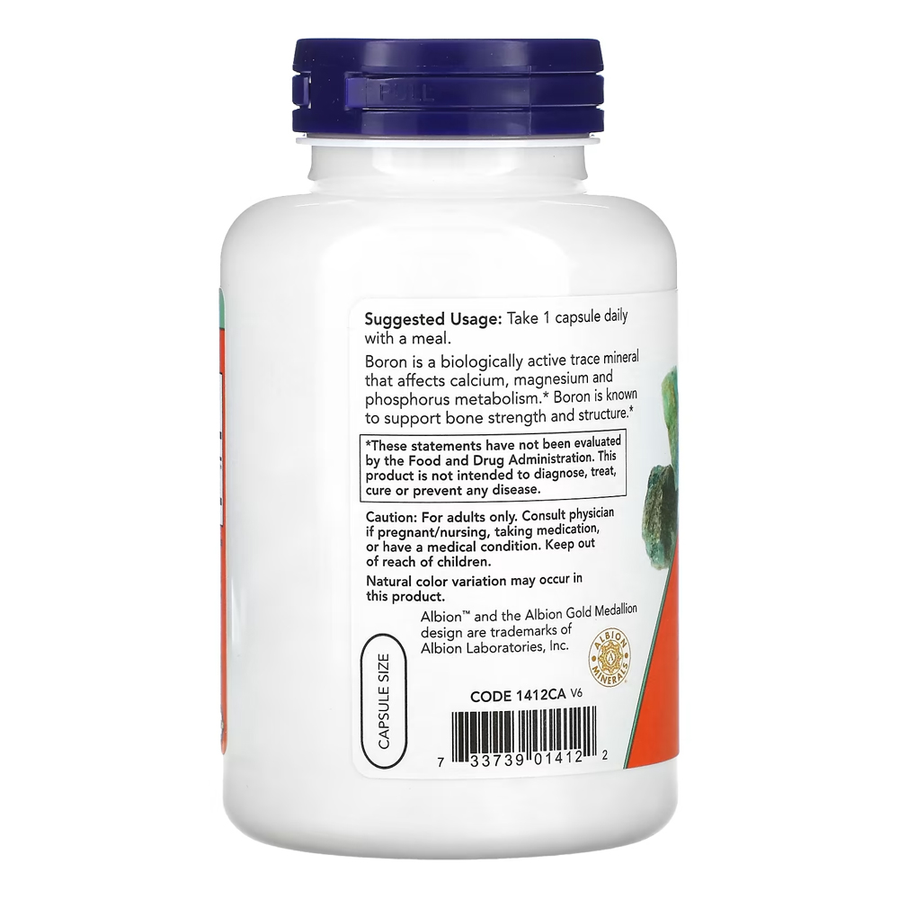 Boron 3mg NOW Foods 250 Caps + Porta Cápsulas