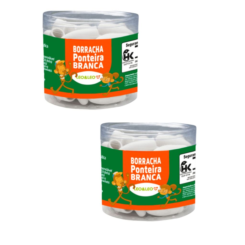 Borracha Ponteira Branca Leo&Leo! - Borracha ponteira; - Não suja e não enruga o papel; - Atóxico; - Borracha isenta de pvc e carga inerte; - Contém: 48 unidades. Marca – Leo&Leo Classe – Material Escolar Capa Protetora – Não Tipo – Ponteira Modelo – Simples