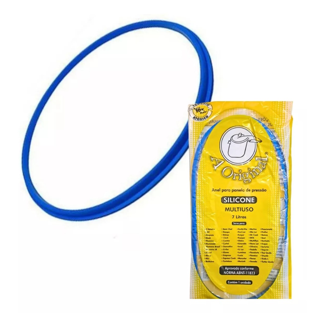Borracha para Panelas de Pressão de 7 Litros Desenvolvida para impedir o escape do ar aprisionado e dos vapores, extremamente importante para a segurança e o bom funcionamento da panela de pressão material de ótima qualidade. Prático e resistente. Especificações técnicas: - Cor: Azul - Material: Silicone - Marca: CWA Borrachas Original *Lavar sempre o anel e a válvula de segurança* Instrução de Uso: Lave o anel antes de colocá-lo na tampa da panela, alongue o anel apenas o suficiente para o encaixe. Introduza a borracha posicionando-a na cavidade da borda da tampa e certificando-se que a parte mais fina esteja devidamente adaptada ao encaixe da tampa. Modelos de borracha Panela de pressão Compatíveis: Panelux, Incal, Clock, 5 Estrelas, Panex, ABC, LL Lar, Cookie, Penedo, Alegrete, Luminex, Corbá, Luzie, Pressionela, Donnalice, Aludi, Marcolar, Prollar, Eirilar, Alumine, RamGs, Marioti, Eliane, Aluminela, eal, Marlu x, Alumfnio Brasil Empres s, Rochedo, Express Cook, Mix Lar, Aluminio JR, Roque, Mr Cook, Fortaleza, Alusol, saturno, Forbrilho, Alusp, MTA, Muliiflon Segura, ASJ, Novo Lar Top Qualy, Fort-Lar, Balduino, Fulgor, triunfs, Oliveire, Bom Chef, Fuzipar, Trofa-L, Braspa, Padeve, Globo, Turbe Qualy, Ponelarte, Brinox, Grenada Somos a Loja Doca revendedor de confiança! Envio imediato.