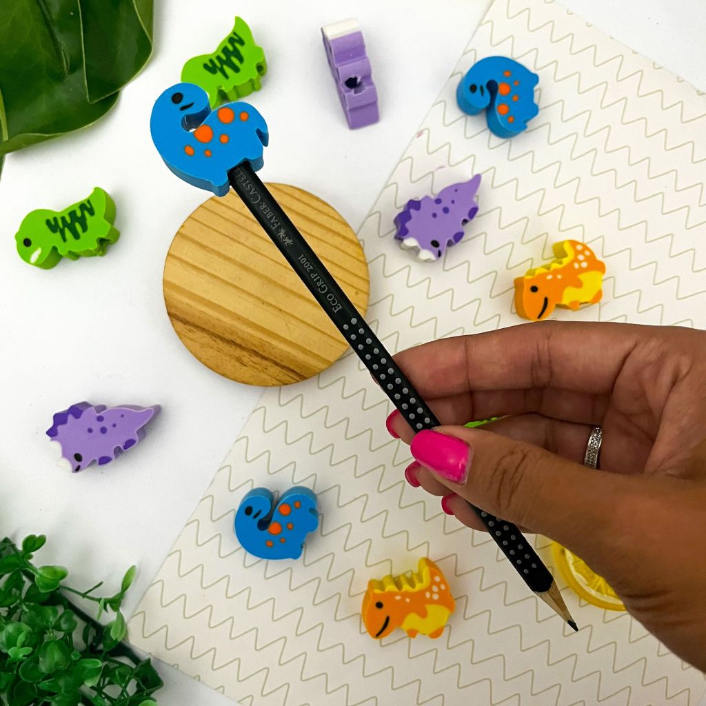 O seus materiais ficarão ainda mais divertidos e descontraídos com a borracha divertida de dinossauros! Ela é perfeita para a criançada além de deixar os estudos mais leves ela é ideal para apagar suas anotações; Demais produtos que compõem a foto não acompanham a borracha.