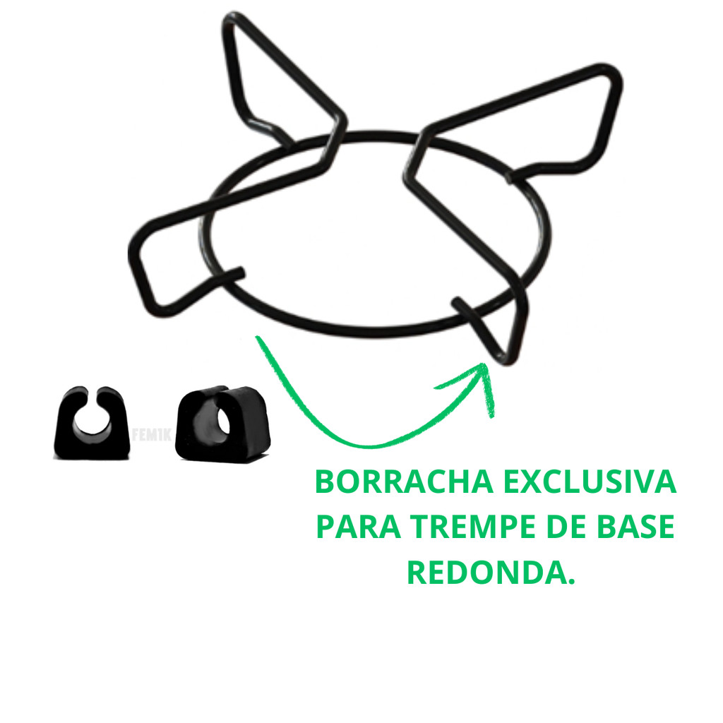 Kit com 16 borrachas da trempe base redonda para cooktop diversas marcas. Compatível com trempes de base redonda das marcas: CONTINENTAL / ITATIAIA / BRASTEMP / TRAMONTINA / CONSUL / MONDIAL / ATLAS / DAKO / PHILCO / FISCHER / CHAMALUX / CHAMALAR / BRASLAR / CLARICE / D&D METAL / SUGGAR / SC ELETRO ATENÇÃO: SOMENTE PARA GRADES DE BASE REDONDA. A adaptação pode gerar variação na altura da grade, o objetivo da utilização da borracha é gerar maior estabilidade da trempe. As trempes com as borrachas aplicadas evitam o atrito direto da trempe com o vidro do cooktop, evitando manchas e riscos. Envio imediato. Agradecemos pela sua preferência e estamos à disposição para qualquer dúvida ou esclarecimento.