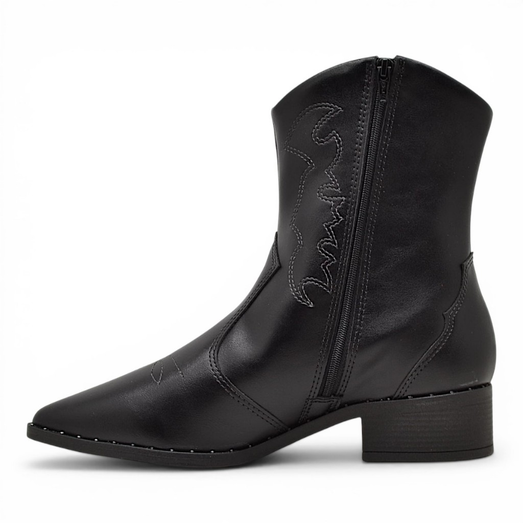 Bota Beira Rio Conforto Feminina Cano Curto Western Salto Grosso Bico Fino Original