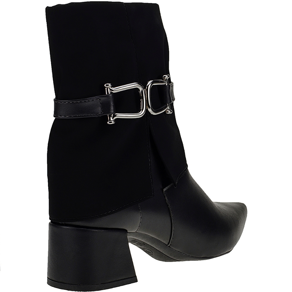 Bota Bico Fino Salto Cano Médio Shekinah Detalhe Gola Virada Capa Enfeite Lateral Moda