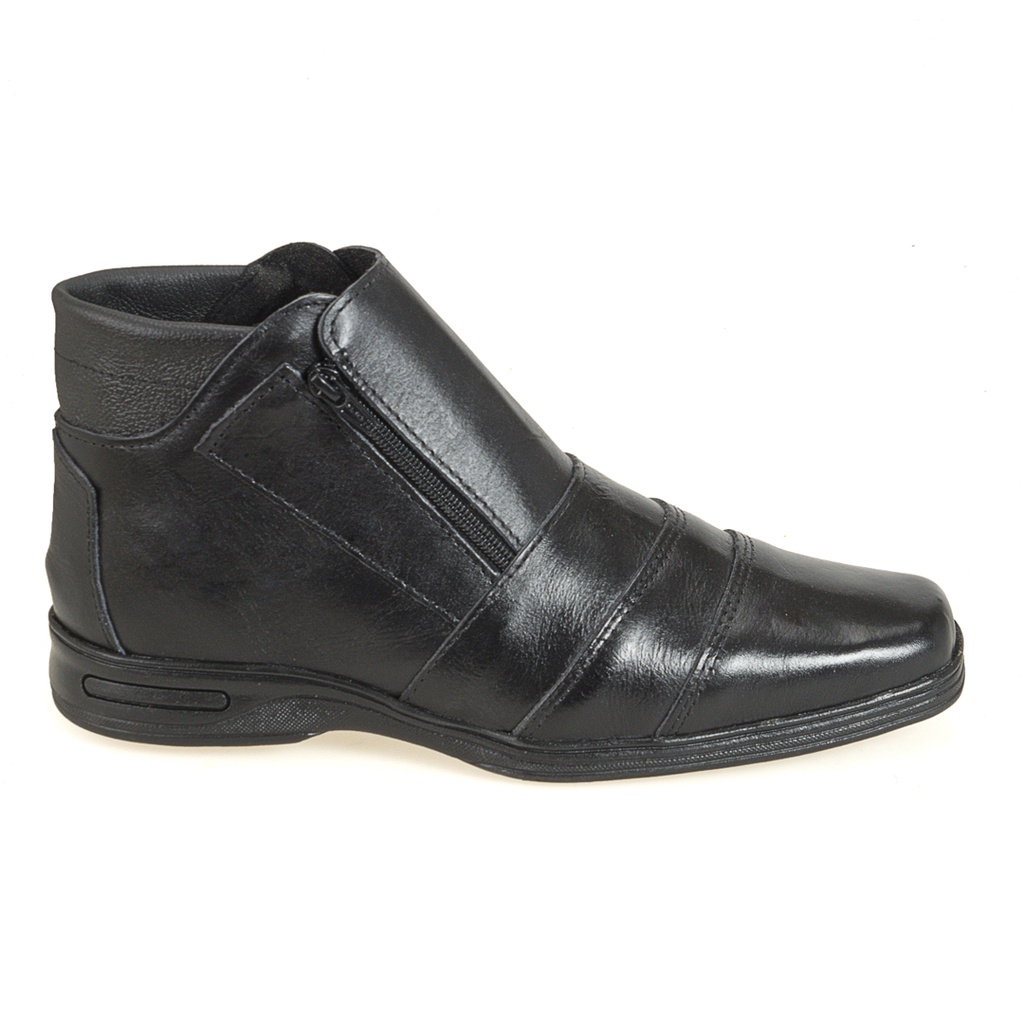 Bota Botina Casual Masculina Couro Legítimo Preto Lançamento Ref 500