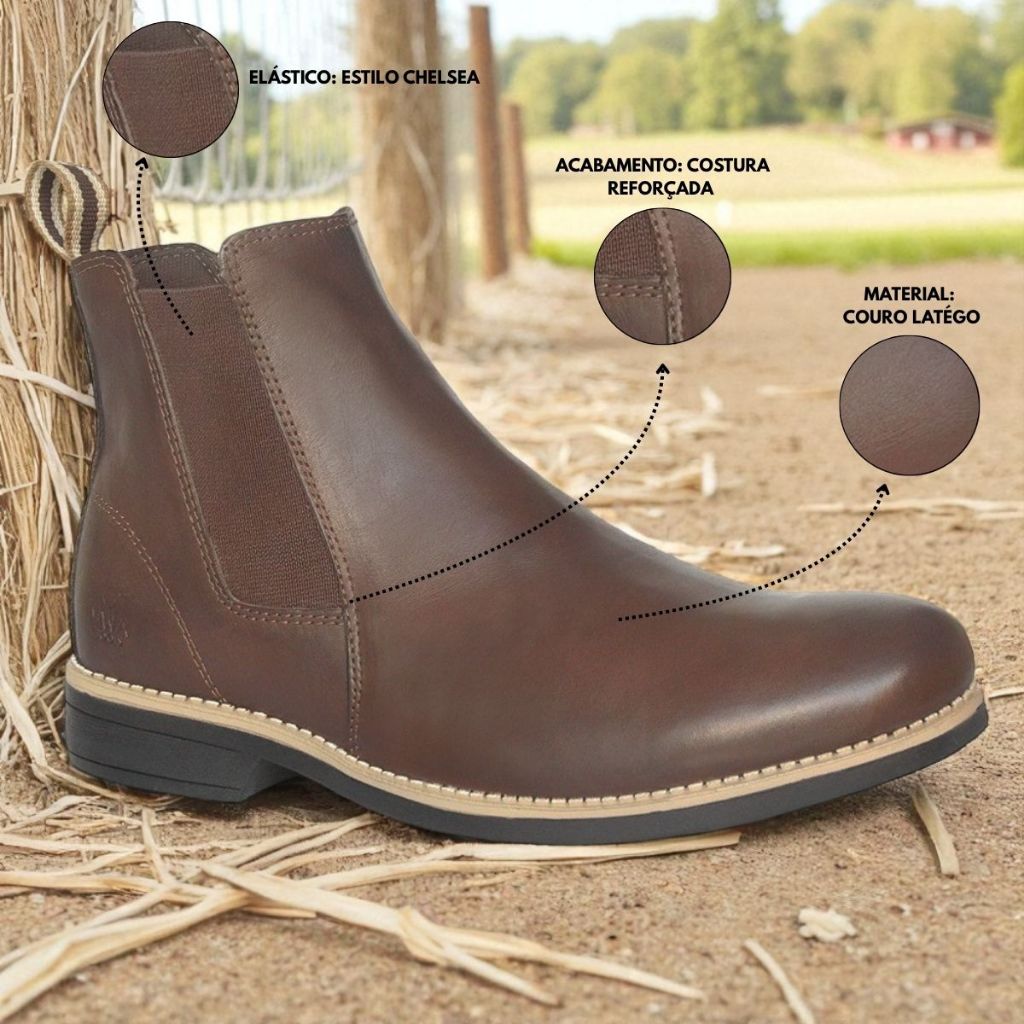 Bota Botina Chelsea Masculina Em Couro Latégo Resistente Cowboy Montaria Rodeio Trabalho