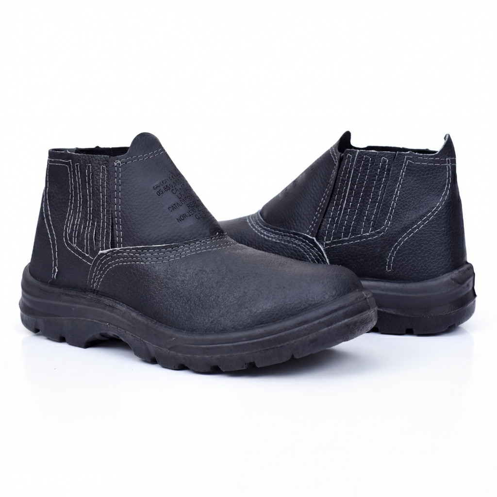 Bota Botina Couro Elástico Biqueira PVC CA 17137 PU Monodensidade Preta