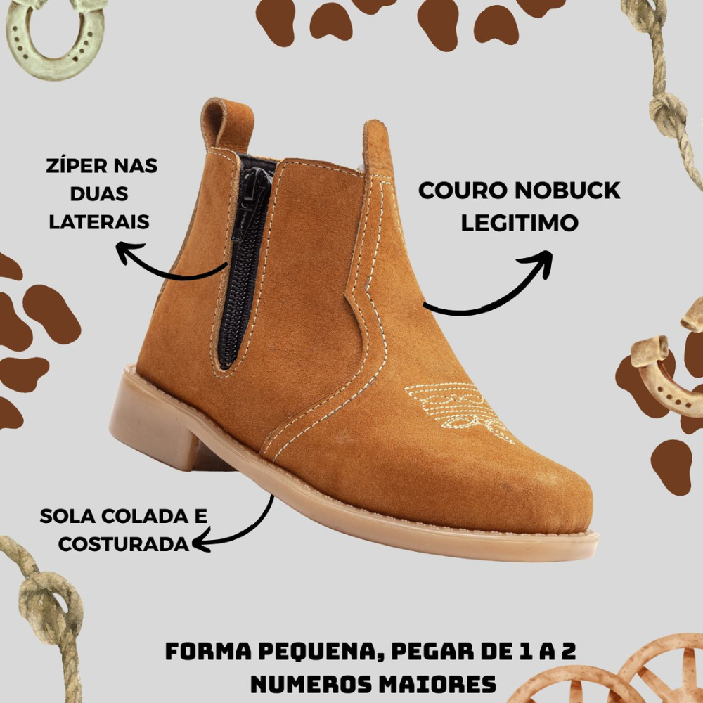 Bota Botina Infantil Country Couro Legitimo Bordada Ziper Lançamento