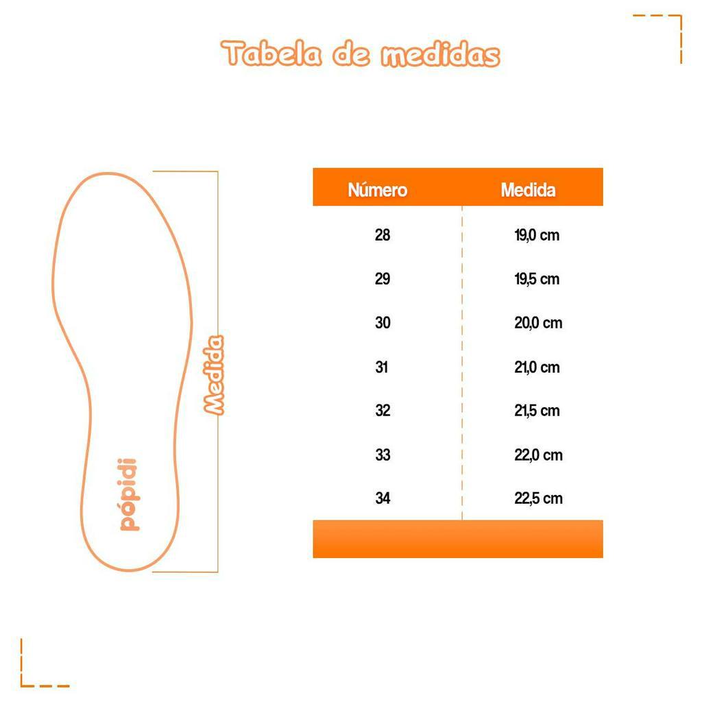 No melhor estilo boho chic a bota jequinha é protagonista nos looks de inverno da garotada mais estilosa. O modelo com construção masculina também pode ser usado por meninas que gostam de estar na moda. Os tons terrosos da cartela de cores nos transportam para os festivais de folk rock dos anos 70. DETALHES DO PRODUTO Tipo de Produto: Botina Jeca Ocasião/Estilo: Casual Material: Sintético Material Interno: Sintético Material da Sola: TR Antiderrapante Nós da Pópidi cuidamos com carinho da relação pré e pós-venda, afinal a satisfação de nossos clientes é muito importante para nós! Atendimento: Segunda à sexta: 07:00 às 18:00 Sábado: 09:00 às 13:00 TABELA DE MEDIDA 28 ------------ 19,0 cm 29 ------------ 19,5 cm 30 ------------ 20,0 cm 31 ------------ 21,0 cm 32 ------------ 21,5 cm 33 ------------ 22,0 cm 34 ------------ 22,5 cm COMO MEDIR Coloque o pé em cima de uma folha de papel e risque em volta dele com um lápis ou caneta. Meça o comprimento do topo até a base do contorno e adicione 0,5 cm de folga. LIMPEZA E CONSERVAÇÃO Evite usar substâncias abrasivas como álcool, detergentes ou solventes nos calçados. Nunca os mergulhe na água, os deixe de molho ou lave na máquina. A secagem dos produtos deve ser feita à temperatura ambiente e na sombra, nunca no sol ou em máquinas. SOBRE A EMPRESA Visão Estar em constante expansão e inovação, de uma forma consistente e arrojada. Missão Proporcionar o bem estar dos nossos clientes, satisfazendo-os em um ambiente agradável e cortês com produtos a preços justos e de qualidade. Valores Respeito, Dedicação, Conexão e Atitude. Boas compras e volte sempre!!!