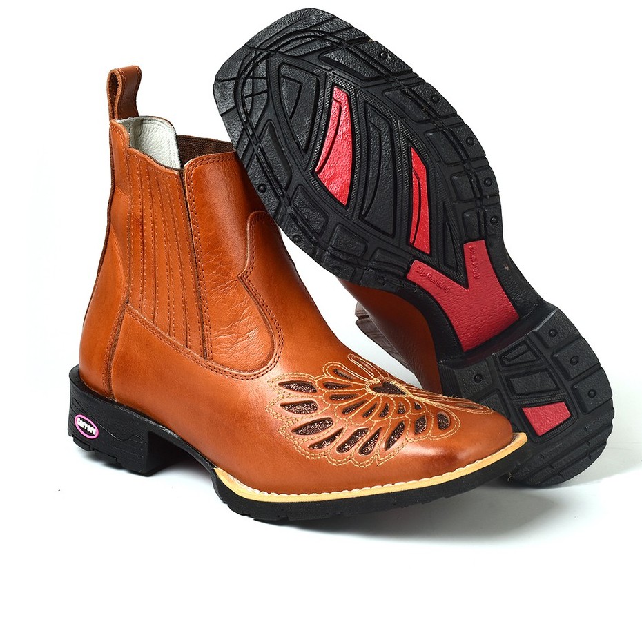 Bota Botina Texana Country Feminina Laser Bordado Couro Legítimo