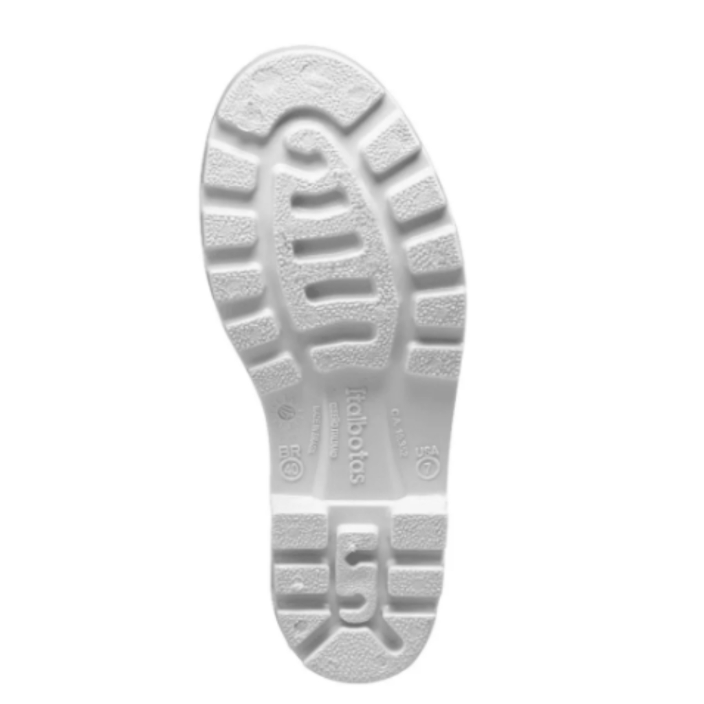 SEJA MUITO BEM VINDO Á 1000 MARCAS SAFETY BRASIL. Bota Branca Galocha Epi Segurança Cano Longo Pvc Ca Antiderrapante Impermeável Proteção Maxisola Borracha Limpeza • Indicado quando a durabilidade é muito crítica pelo piso, em plataformas ou pelo peso do colaborador. • Solado com espessura extra. • Altamente resistente a grande variedade de químicos e ácidos. CONFORTO: • Entre sola + espessura sola = conforto térmico extra AMBIENTES INDICADOS: • Frigoríficos, abatedouros, indústrias de alimentos, laticínios, restaurantes industriais e prestadores de serviços. Calçado ocupacional tipo bota em cano longo (desenho tipo D) na cor branca, impermeável, confeccionado em policloreto de vinila (PVC), solado antiderrapante de uso profissional, acabamento interior com meia de poliéster na cor branca. • Proteção dos pés do usuário contra riscos de natureza leve, contra agentes abrasivos e escoriantes e contra umidade proveniente de operações com uso de água. Observação: I) Calçado com resistência ao escorregamento em piso de cerâmica contaminado com lauril sulfato de sódio (detergente) (SRA); II) Calçado resistente aos seguintes reagentes químicos: Heptano (J); Hidróxido de Sódio 40% (K); Ácido acético (99 ± 1)% (N); Solução de amônia (25 ± 1)% (O); Peróxido de hidrogênio (30 ± 1) % (P); Isopropanol (Q); Hipoclorito de sódio (13 ± 1)% (R); III) Solado resistente ao óleo combustível (FO). Normas Técnicas: ABNT NBR ISO 20344:2015 / 20347:2015 e EN 13832-2:2018 CA: 37.771 ATENÇÃO: Produto sujeito a variações de cor devido às características naturais do material e ao padrão de visualização em diferentes telas. Imagem ilustrativa. Podem haver variações nas cores e design do produto.